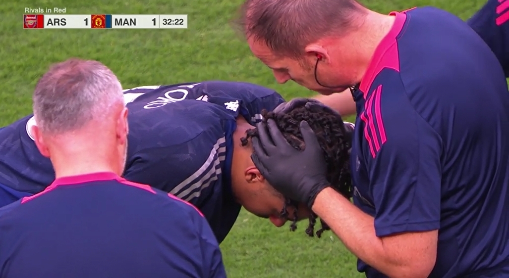 07月31日讯 曼联在此前的热身赛1-2不敌阿森纳。新援中卫6200万欧的约罗,在比赛上半场第33分钟因伤被换下场。今日约罗现身,拄着双拐走路,左脚包裹得严严实实的。